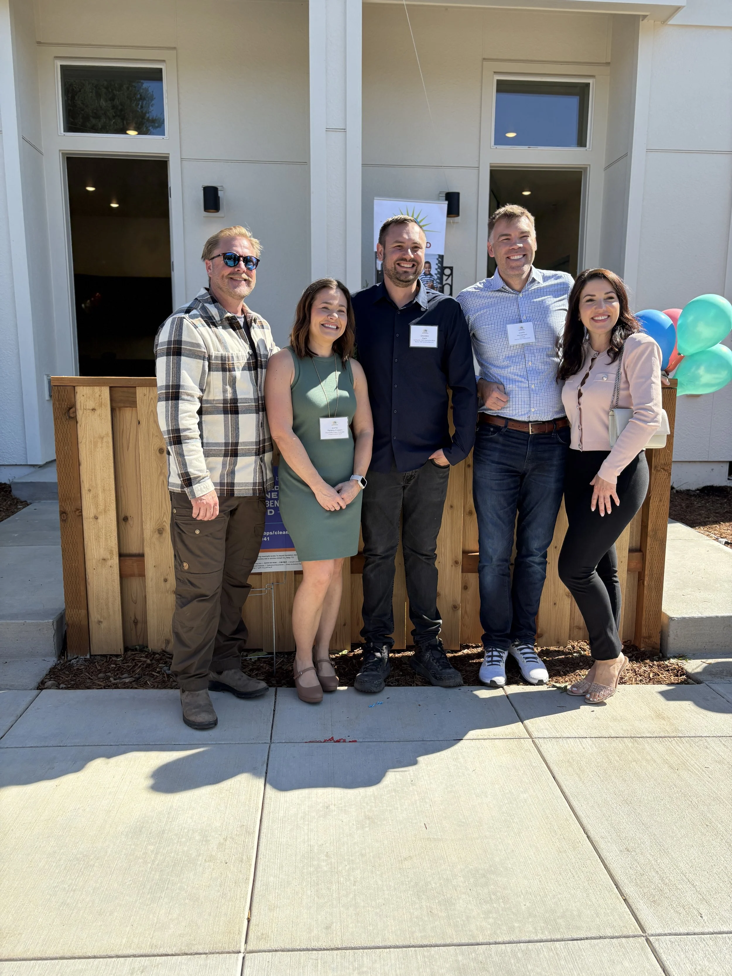 The Development Team: Scott Collins, Bridgetown Equity Construction Inc.; Proud Ground Real Estate Project Associate Katie Parano-Friesen; Ondrej Cech and Chris Henderson from Revive NW Construction; Alexandra Henderson, Commercial Real Estate Broker and Senior VP, Kidder Mathews